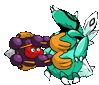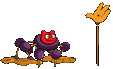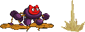 Handy little guy, ain'ne? Horrible puns aside, Fidgit is chock full of bunch of tricks. One of the best crossup jumpins (j.B), a fast basic jumpin (j.C), and an indirectly powerful grab means Fidgit has one of the best defence-piercing movesets in the game, second only to a well=played Vitalimar. This is on top of his ability to start his juggles at almost any range, due to Earth Power (Which is a *longrange* low) into Snatch. Because of this, he is mighty dangerous at effectively all ranges.