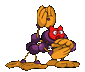 A flurry of fists is unleashed and Fidgit pelts the enemy with blows. Fidgit's main source of damage in combos, there are a number of ways to combo into Comet Punch, the most reliable being 5b. Strong Comet Punch can link into the weak version, and the weak version can cancel into Super, though for the whole sequence to work the intitial CP has to be landed after a successful crossup