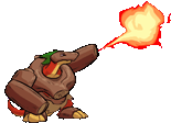 A quick burst of flame engulfs the ground jetting Pyroak into the air before he smashes down. The flames must be blocked low. This move can be comboed into using the aforementioned cancels.