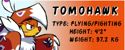 Tomohawk makes up for his small stature with courage seemingly too large to be contained within his tiny frame. Flying around the battlefield, Tomohawk chips away at attackers from a distance, but isn't afraid to dive at his enemies to strike for justice.